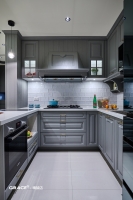 打破過於寂靜的氛圍,質感中帶著柔和的神秘,提升了空間的輕奢感。 像是賦予櫥櫃一層朦朧的光,高檔大氣,壁面的磁磚搭配上溫潤如玉般材質,靜謐而美好。