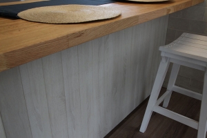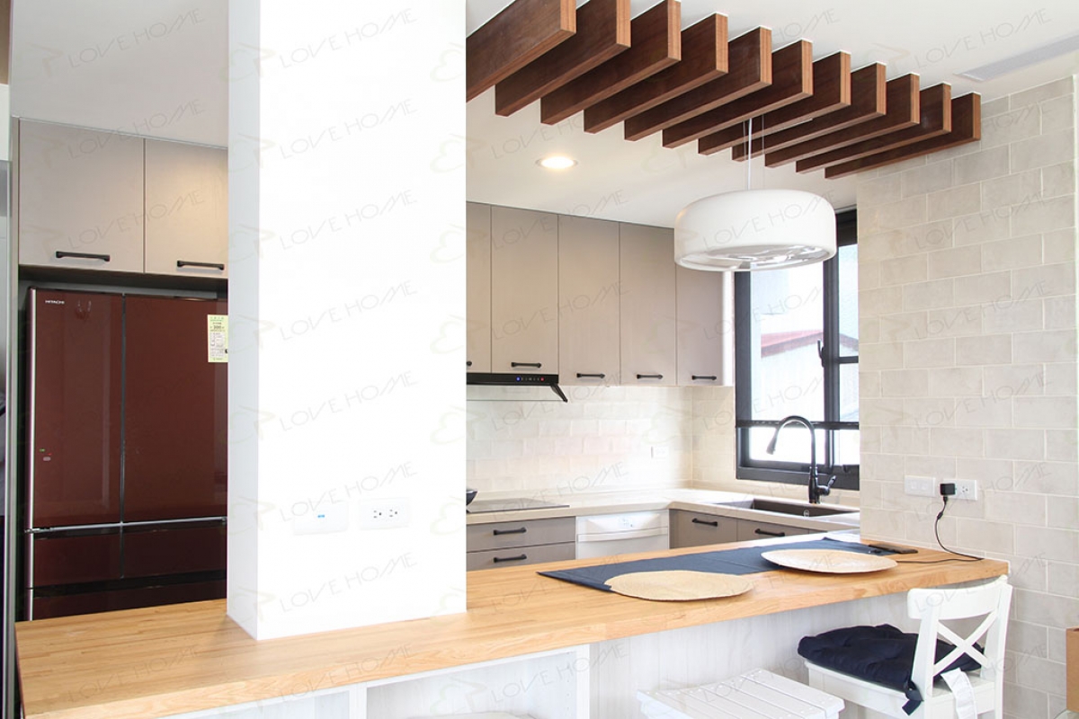 輕工業風的彈性變化,配色上也較不這麼的「重」跟「冷」,搭配吧檯實木的溫暖也多了幾分清新感,非常適合