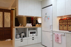 自然簡約搭配白系木紋裡的線條,呈現空間廚房美學