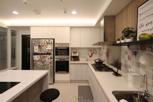 簡約混搭把實木把手元素置入櫥櫃內,運用把手線條勾勒出美學的韻味