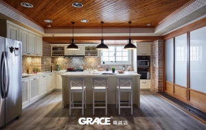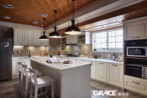 藝術感十足的花磚,成為點綴空間的好夥伴,將這套鄉村風廚房營造出一種遠離喧囂的簡單清新感,展現田園鄉村的放鬆好去處!