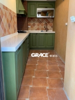 磁磚和地磚都來自歐洲進口,南法鄉村鮮明色彩和充滿人文手感的線條融入餐廚設計中,讓一天的愜意生活,從廚房開始。