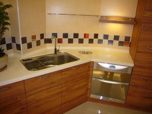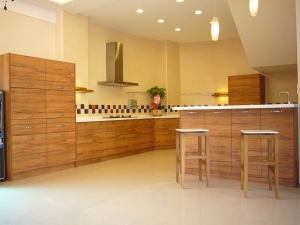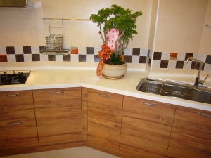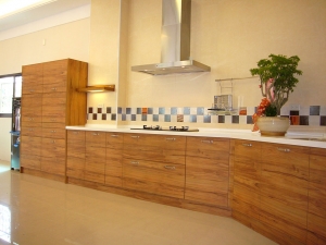 我的廚房會轉彎,運用木紋做橫向設計,把空間做到無限延伸的美學感