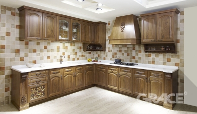 維多利亞系列 廚房空間2 Baroque/Barock,源自葡萄牙文, 為「變形珍珠」之意, 在歐洲藝術史上係指一個時代之標誌, 巴洛克建築之風格在於建築物外貌精美之裝飾及雕琢, 造就出一種輕盈流暢之動態感, 建築內部圓柱、噴泉、雕像、鑲嵌玻璃承襲巴洛克風格 加上細膩的手法並藉由外在光線營造出一種如幻似真的感受, 配合著精美絕倫之工藝技巧, 予人一種金碧輝煌之感!
