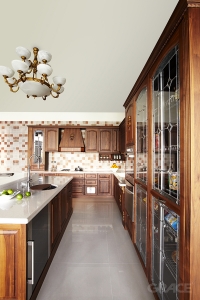 維多利亞系列 廚房空間5 Baroque/Barock,源自葡萄牙文,為「變形珍珠」之意, 在歐洲藝術史上係指一個時代之標誌, 巴洛克建築之風格在於建築物外貌精美之裝飾及雕琢, 造就出一種輕盈流暢之動態感, 建築內部圓柱、噴泉、雕像、鑲嵌玻璃承襲巴洛克風格 加上細膩的手法並藉由外在光線營造出一種如幻似真的感受, 配合著精美絕倫之工藝技巧, 予人一種金碧輝煌之感!