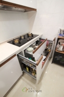 簡約混搭把實木把手元素置入櫥櫃內,運用把手線條勾勒出美學的韻味