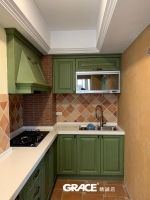 磁磚和地磚都來自歐洲進口,南法鄉村鮮明色彩和充滿人文手感的線條融入餐廚設計中,讓一天的愜意生活,從廚房開始。